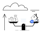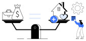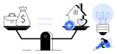 Zdjęcie "Podejmowanie decyzji finansowych. Saldo skala pieniądze, inwestycje, oszczędności, i wybory nieruchomości. Planowanie finansowe na rzecz stabilności, równości i przyszłego bezpieczeństwa. Dla aplikacji finansowych Narzędzia inwestycyjne" może być wykorzystywane do celów osobistych i komercyjnych zgodnie z warunkami zakupionej licencji Royalty-free. Obraz jest dostępny do pobrania w jakości wysokiej rozdzielczości do 5760x3840.