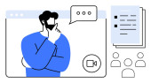 Zdjęcie "Młoda osoba odpoczywająca podbródek na rękę, rozważając rozwiązania, wzrost i postęp symbolizowane przez laptopa i strzałki w górę. Idealny dla biznesu, samorozwoju, edukacji, technologii, kariery innowacyjnej" może być wykorzystywane do celów osobistych i komercyjnych zgodnie z warunkami zakupionej licencji Royalty-free. Obraz jest dostępny do pobrania w jakości wysokiej rozdzielczości do 5760x3840.