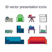 Prezentacji ikony z projektorem i wygodnych miejsc