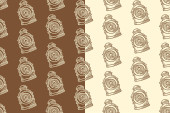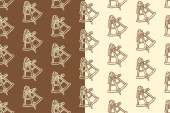 Narzędzie tnące Hacksaw grawerowanie bezszwowego wzoru na brązowym beżowym tle zestaw do obróbki drewna. Cięcie tła do wylęgania piły dla rzemieślnika. Piła ręczna linii artystycznej motyw tapety dla stolarki