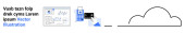 Wizualizacja danych, analityka, przechowywanie w chmurze, rozwiązania technologiczne, postęp cyfrowy, narzędzia do prezentacji. Wykres i wykres ciasta obok symbolu chmury ze strzałkami. Wizualizacja i analiza danych