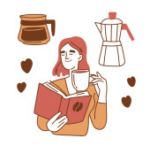 Rysunek linii ilustracja kobiety z podsumowaniem włosów warzenia kawy z kapaniem dłoni
