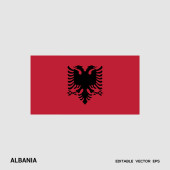 Flaga Albanii. Kultura albańska i europejska. Ustaw na czystym białym tle z nazwą kraju i miejsca do kopiowania. Lśniąca flaga wektorowa przedstawiana w trzech warstwach tworzących dynamiczny efekt falowania z realistycznymi cieniami i gradientami
