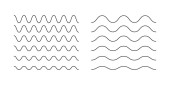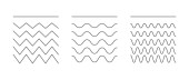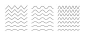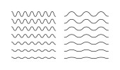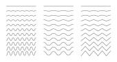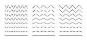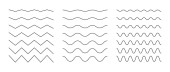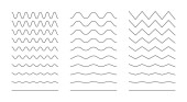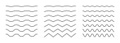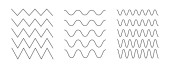 Wavy i zygzakowaty zestaw podkreśleń poziomych. Kolekcja linii fal. Zestaw falistych linii. Wzór ozdoby falowej. Pomachaj cienką linią tła. Ilustracja wektora