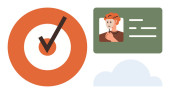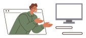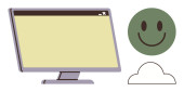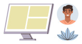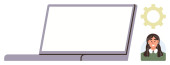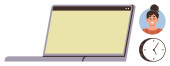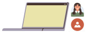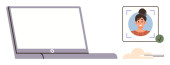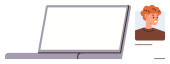 Nauka cyfrowa, telekomunikacja, praca zdalna, rozmowy wideo, wirtualne spotkania, komunikacja technologiczna. Laptop obok uśmiechniętej ikony awatara. Koncepcja zdalnej pracy i połączeń wideo