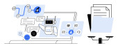 Zdjęcie "Sztuczna inteligencja, obsługa klienta, zakupy online, chatboty, e-commerce, cyfrowy przepływ pracy. Robot chatbot współpracuje z użytkownikami podczas gdy ikona koszyka s e-commerce. Czaty sztucznej inteligencji i handel elektroniczny" może być wykorzystywane do celów osobistych i komercyjnych zgodnie z warunkami zakupionej licencji Royalty-free. Obraz jest dostępny do pobrania w jakości wysokiej rozdzielczości do 5760x3840.