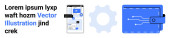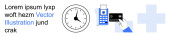 Narzędzia produktywności, technologia cyfrowa, zarządzanie przepływem pracy, śledzenie czasu, koncepcje interfejsu użytkownika, treści edukacyjne. Klawiatura, ikona zegara i danych. Narzędzia wydajności i zarządzanie przepływem pracy