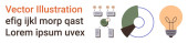 Kreatywność, nawigacja, planowanie, innowacje, wydajność, organizacja. Żarówka, mapa ze szpilkami lokalizacyjnymi i lista kontrolna. Koncepcja kreatywności i nawigacji z żywymi symbolami pomysłów