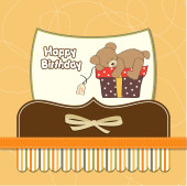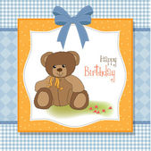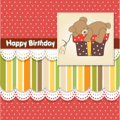 kartka urodzinowa z misiaczkiem i dużym pudełkiem prezentów