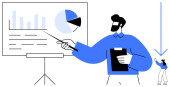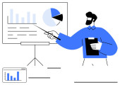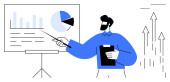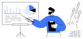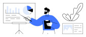 Prezentacja biznesowa. Prezenter wyjaśnia wykresy i dane analityczne w środowisku korporacyjnym. Prezentacja biznesowa s strategii i decyzji wzrostu. Do planowania, analizy, strategii, doradztwa