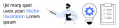 Ochrona danych, edukacja internetowa, weryfikacja tożsamości, własność intelektualna, uczenie się, uwierzytelnianie. Ikona odcisków palców ze znakiem kontrolnym, długopisem i książką z żarówką. Weryfikacja tożsamości