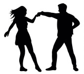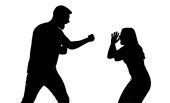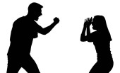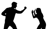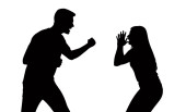 Obraz przedstawia czarną sylwetkę mężczyzny i kobiety zaangażowanych w gorącą kłótnię Mężczyzna wskazuje palcem na kobietę, która wydaje się być zdenerwowana z podniesionymi rękami Scena jest ustawiona na przezroczystym tle podkreślając