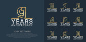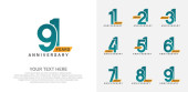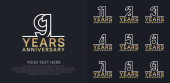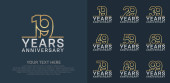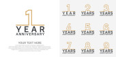 Rocznica logo ustawić wektor projektu, srebrny i żółty kolor na uroczystości