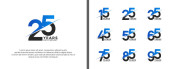 Rocznica logo ustawić wektor projektu, niebieski i czarny kolor na uroczystość