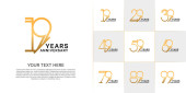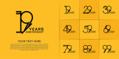 Rocznica logo ustawić wektor projektu, biały i żółty kolor na uroczystości
