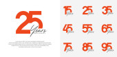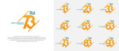 Rocznica logo ustawić wektor projektu, pomarańczowy i szary kolor na uroczystość