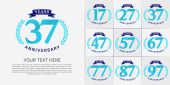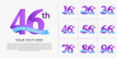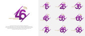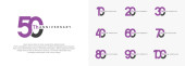 Rocznica logo zestaw wektor projekt, fioletowy kolor na uroczystość