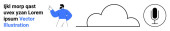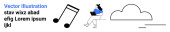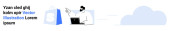 Przechowywanie cyfrowe, przetwarzanie w chmurze, media online, strumieniowanie danych, zarządzanie wideo, koncepcje technologiczne. Osoba trzymająca tablet obok ikon chmury i wideo. Chmura obliczeniowa i przechowywanie cyfrowe