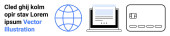 Tworzenie treści, edycja cyfrowa, produkcja multimedialna, narzędzia online, zarządzanie mediami, projektowanie. Odtwórz przycisk, ekran komputera i ikony nożyczek. Koncepcja tworzenia treści i edycji cyfrowej
