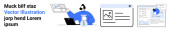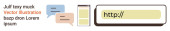 Bezpieczeństwo online, integracja sztucznej inteligencji, zarządzanie danymi, postęp technologiczny, koncepcje kodowania, alarmy bezpieczeństwa. Ikona ostrzegawcza z adresem URL i robot współdziałający z interfejsem cyfrowym. Bezpieczeństwo online