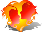 mężczyzna i kobieta profile z czerwonym sercem na tle.