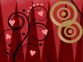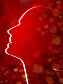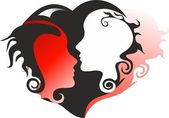 mężczyzna i kobieta profile przeciwko różowy serce na czerwonym tle.
