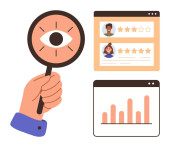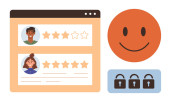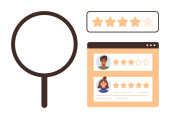 Zdjęcie "Recenzje online, systemy informacji zwrotnej, oceny użytkowników, ocena cyfrowa, wgląd klienta, oceny jakości. Duża ikona oka obok opinii użytkowników na stronie internetowej. Przeglądy online i systemy informacji zwrotnej" może być wykorzystywane do celów osobistych i komercyjnych zgodnie z warunkami zakupionej licencji Royalty-free. Obraz jest dostępny do pobrania w jakości wysokiej rozdzielczości do 5760x3840.