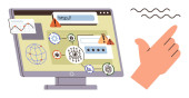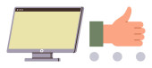 Projektowanie interfejsów użytkownika, ocena opinii, aprobata online, komunikacja cyfrowa, wydajność w miejscu pracy, nowoczesne narzędzia. Monitor i gest podnoszenia kciuków. Ocena opinii i informatyka
