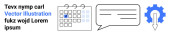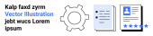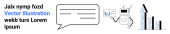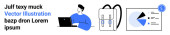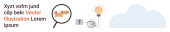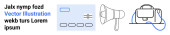 Technologia, komunikacja, interakcje z użytkownikami, sieci cyfrowe, funkcje wyszukiwania, handel elektroniczny. Elementy w stylu Blueprint podnoszą ikony, ścieżki i szkło powiększające. Technologia i komunikacja