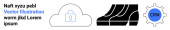 Logistyka, transport, proces dostawy, globalna żegluga, systemy towarowe, łańcuchy dostaw. Samolot lecący z przerywaną trasą i chmurą, przesiadający się na ciężarówkę dostawczą. Logistyka