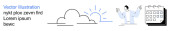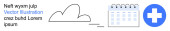 Organizacja danych, przechowywanie w chmurze, planowanie zadań, synchronizacja cyfrowa, zarządzanie przepływem pracy, rozwiązania informatyczne. Kalendarz, dokument i chmura połączone liniami. Koncepcja przechowywania danych w chmurze i organizacji danych