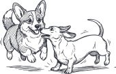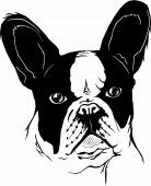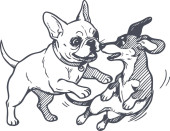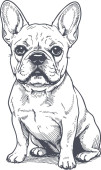 francuski buldog uścisk dłoni z człowieka w czarny wypełnić ręcznie rysowane styl bez białych wypełnień dla łatwej edycji i wysokiej klasy projektów projektowych