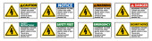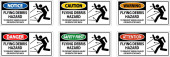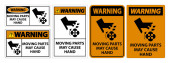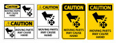 Ten zestaw znaków ostrzegawczych zawiera wyraźne symbole i komunikaty o ruchomych częściach i bezpieczeństwie rąk. Idealny dla miejsc pracy w celu poprawy świadomości bezpieczeństwa.