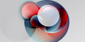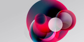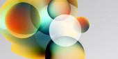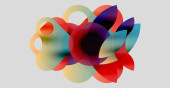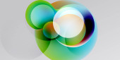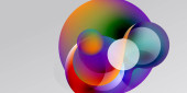 Kompozycja abstrakcyjna z nakładającymi się na siebie półprzezroczystymi okręgami. Kolory mieszają się, tworząc miękkie gradienty, na ciemnym tle. Minimalistyczny design.