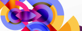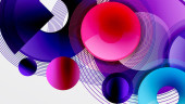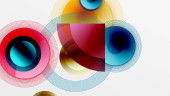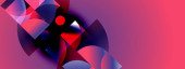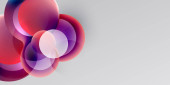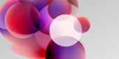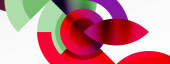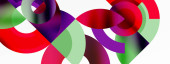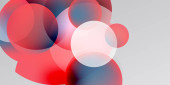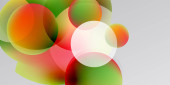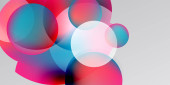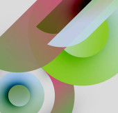 Abstrakcyjne koła pokrywają się, tworząc żywe czerwone, białe, zielone odcienie. Miękkie gradienty wtapiają się w ciemne tło. Minimalistyczny design.