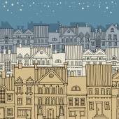 Zbiór scen miejskich budynków i domów, starej architektury,