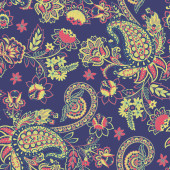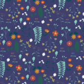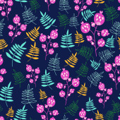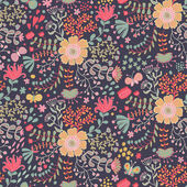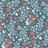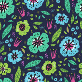 Głębokie tło marynarki z rozproszonymi różowymi, morskimi i oliwkowymi kwiatami stylizowanymi. Idealny do tkanin, tapet, opakowań upominkowych.