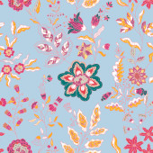 Zdjęcie "Głębokie tło marynarki z rozproszonymi różowymi, morskimi i oliwkowymi kwiatami stylizowanymi. Idealny do tkanin, tapet, opakowań upominkowych." może być wykorzystywane do celów osobistych i komercyjnych zgodnie z warunkami zakupionej licencji Royalty-free. Obraz jest dostępny do pobrania w jakości wysokiej rozdzielczości do 5760x3840.