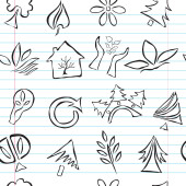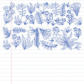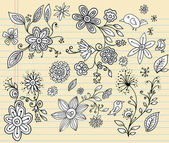 kwiaty i liście szkicowy zbiory wektor wzór zestaw