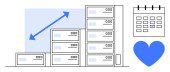 Zarządzanie danymi, systemy poczty elektronicznej, komunikacja, skalowalność, infrastruktura serwerów, połączenie cyfrowe. Stosy serwerów rośnie w rozmiarze, e-mail koperta ikona serca. Wzrost danych i systemy poczty elektronicznej