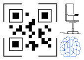 Transakcje cyfrowe, bezpieczeństwo danych, integracja technologiczna, badania naukowe, blockchain, łączność. Kod QR, laptop i model molekularny. Transakcje cyfrowe i koncepcja bezpieczeństwa danych