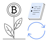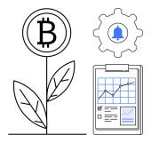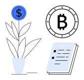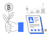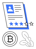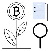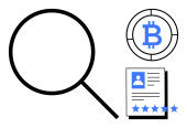 Symbol bitcoina jako koncepcja wzrostu roślin, dokument profilowy z gwiazdami i szkło powiększające. Idealny do kryptowaluta wzrostu, osobistej marki, gospodarki cyfrowej, reputacji online