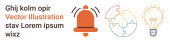 Komunikacja, usługi tłumaczeniowe, partnerstwa, współpraca, rozwiązania językowe, powiadomienia. Symbol alarmu, wymiana tłumaczeń i ikony uścisku dłoni. Usługi komunikacyjne i tłumaczeniowe