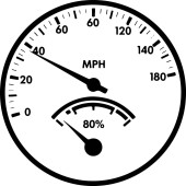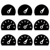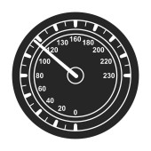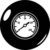 Czarny manometr z białymi detalami i cyframi jest pokazany na białym tle. Skrajnia ma okrągłą twarz z białym obrysem i oznaczeniami, w tym numerami 20, 40, 60, 100 i 180. Biała igła wskazuje na wartość pomiędzy 20 a 40. - Co?