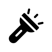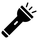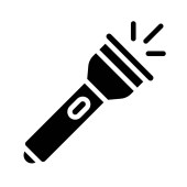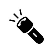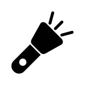 Ikona latarki oświetlająca wiązki światła na białym tle reprezentująca widoczność i zastosowanie w sytuacjach awaryjnych