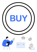 Koncepcja handlu elektronicznego. E-commerce z przyciskiem kupna i indywidualnym przeglądaniem na tablecie. Działalność e-commerce skupia się na zakupach cyfrowych, platformach internetowych i innowacjach zakupowych. Do handlu elektronicznego