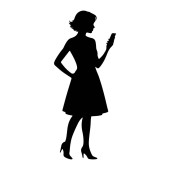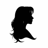 Prosta czarno-biała kobieta z krótkimi włosami i zwisającymi kolczykami. Twarz kobiety jest niewidoczna i jest przedstawiona od ramion do góry. Ma krótkie włosy z grzywką i nosi duże, zwisające kolczyki o trójkątnym kształcie.