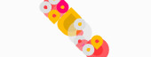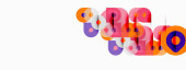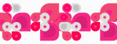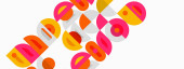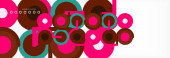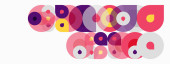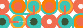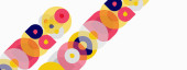 Abstrakcyjne kolorowe koła pokrywają się, tworząc zabawne wzory. Miękkie różowe, żółte, czerwone dominują w składzie. Minimalistyczny design wywołuje radość.