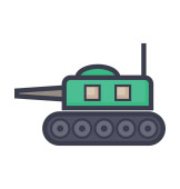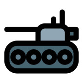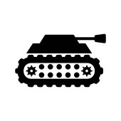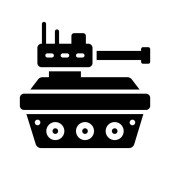 Symbol pojazdu opancerzonego czołgu bojowego reprezentujący ciężki sprzęt wojskowy używany w operacjach bojowych i strategii obrony pola bitwy.