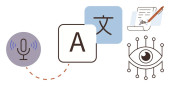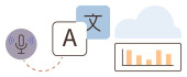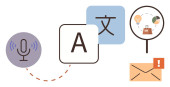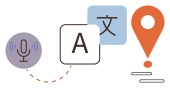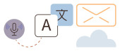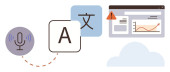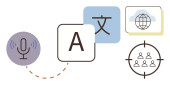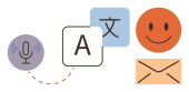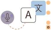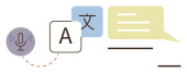 Nauka języków, narzędzia cyfrowe, rozpoznawanie mowy, globalna komunikacja, konwersja tekstu, zasoby edukacyjne. Mikrofon, bańki na mowę i ikony tłumaczeń. Nauka języków